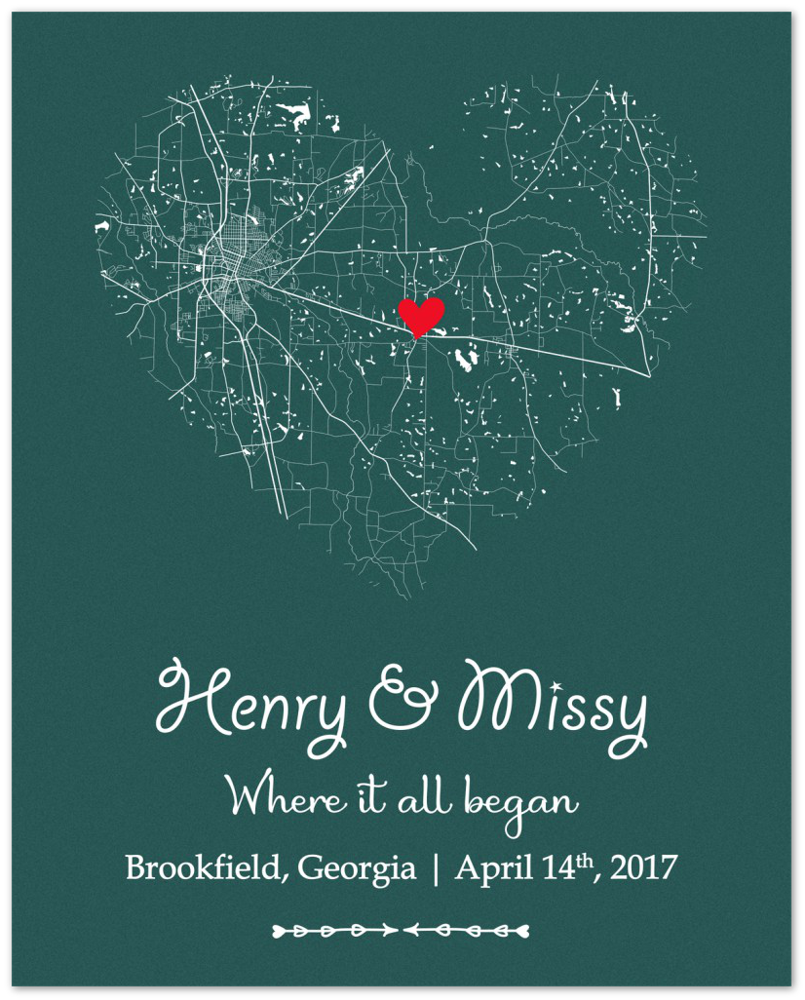 City Heart Map -- Unframed 16''x20'' -- Henry & Missy