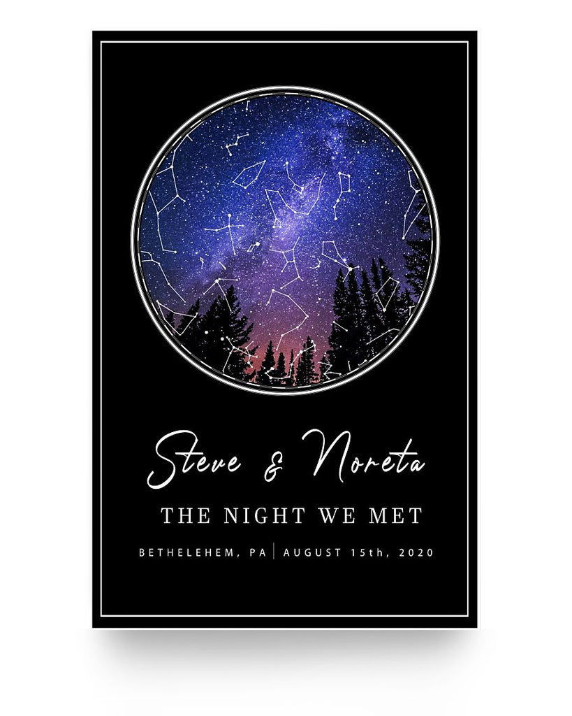 Personalized Anniversary Map of Star -- 11''x17'' -- Steve & Noreta
