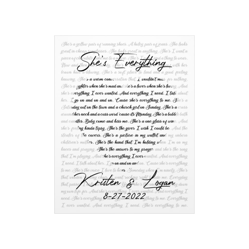 Printify 11x14 Poster - She’s Everything - Kristen & Logan 8-27-2022