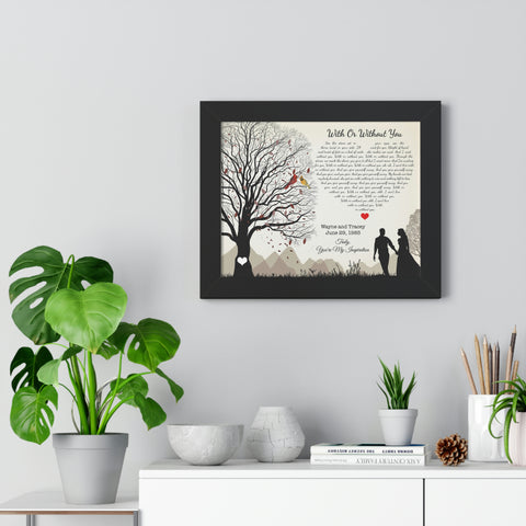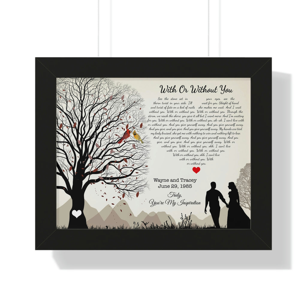 Printify Black Framed 14x11 Poster - With or Without You - Wayne and Tracey June 29, 1985