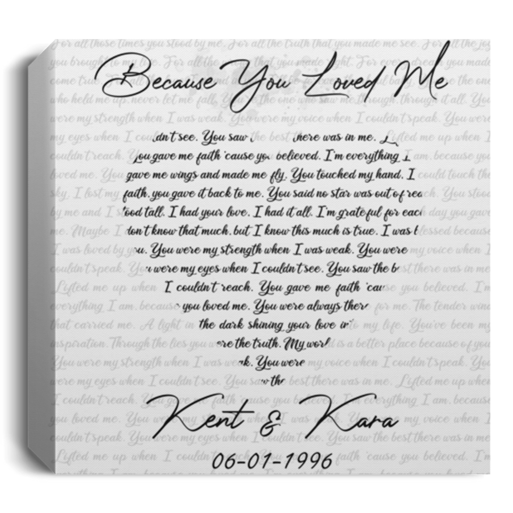 Song Lyrics -- Kent & Kara 06-01-1996 -- Square Canvas 12"X12" -- CC