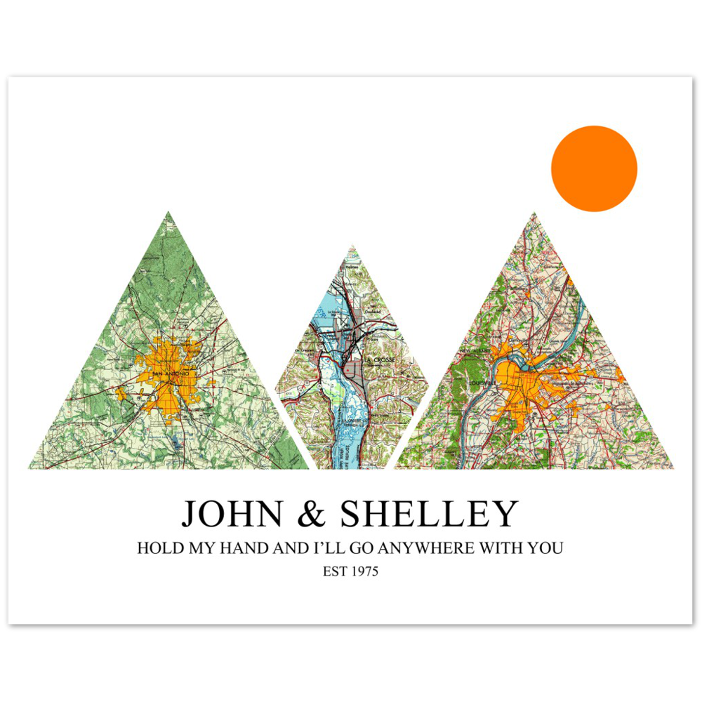 Travel Maps -- Unframed 8''x10'' -- John and Shelley