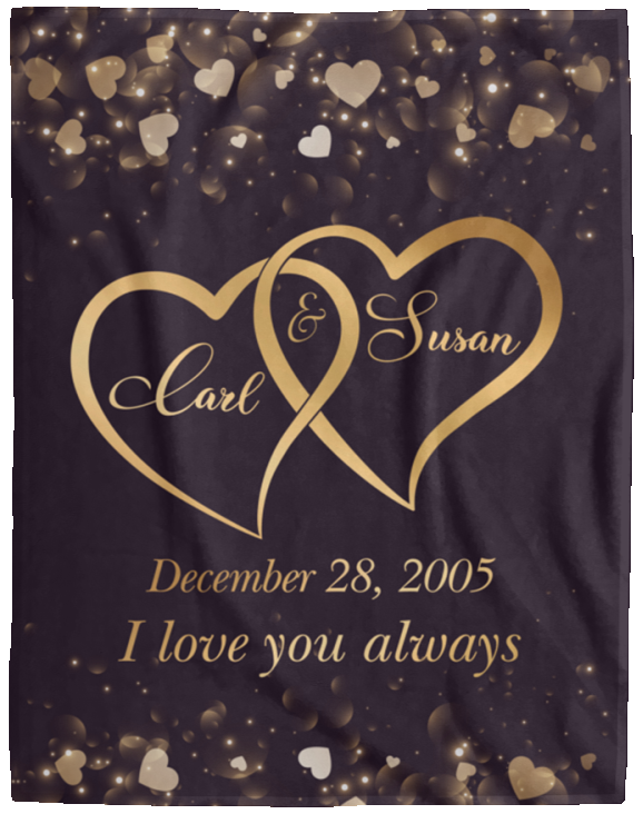 Two Hearts Blanket - Cozy Plush Fleece 60x80 -- Carl & Susan